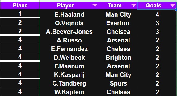 With the following four fixtues in th WSL this weekend, can anyone oust Haaland from the top?